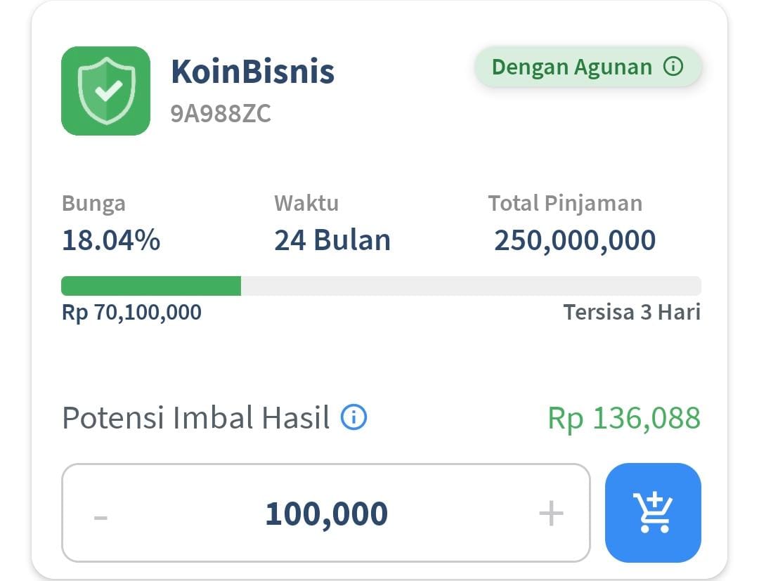Dengan aset mencapai lebih dari Rp57 miliar, perusahaan menunjukkan struktur keuangan yang kuat untuk mendukung skala operasional yang besar. Adanya agunan tunai memberikan perlindungan tambahan bagi lender. Pinjaman ini tersedia dengan tenor 24 bulan, cocok bagi lender yang mengutamakan stabilitas, kelancaran arus kas, dan perlindungan nilai melalui agunan.
