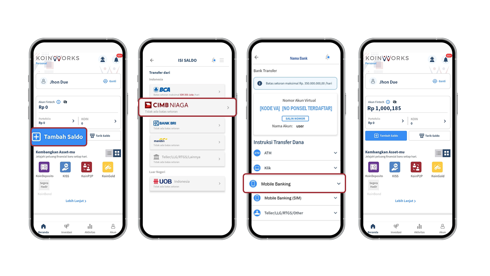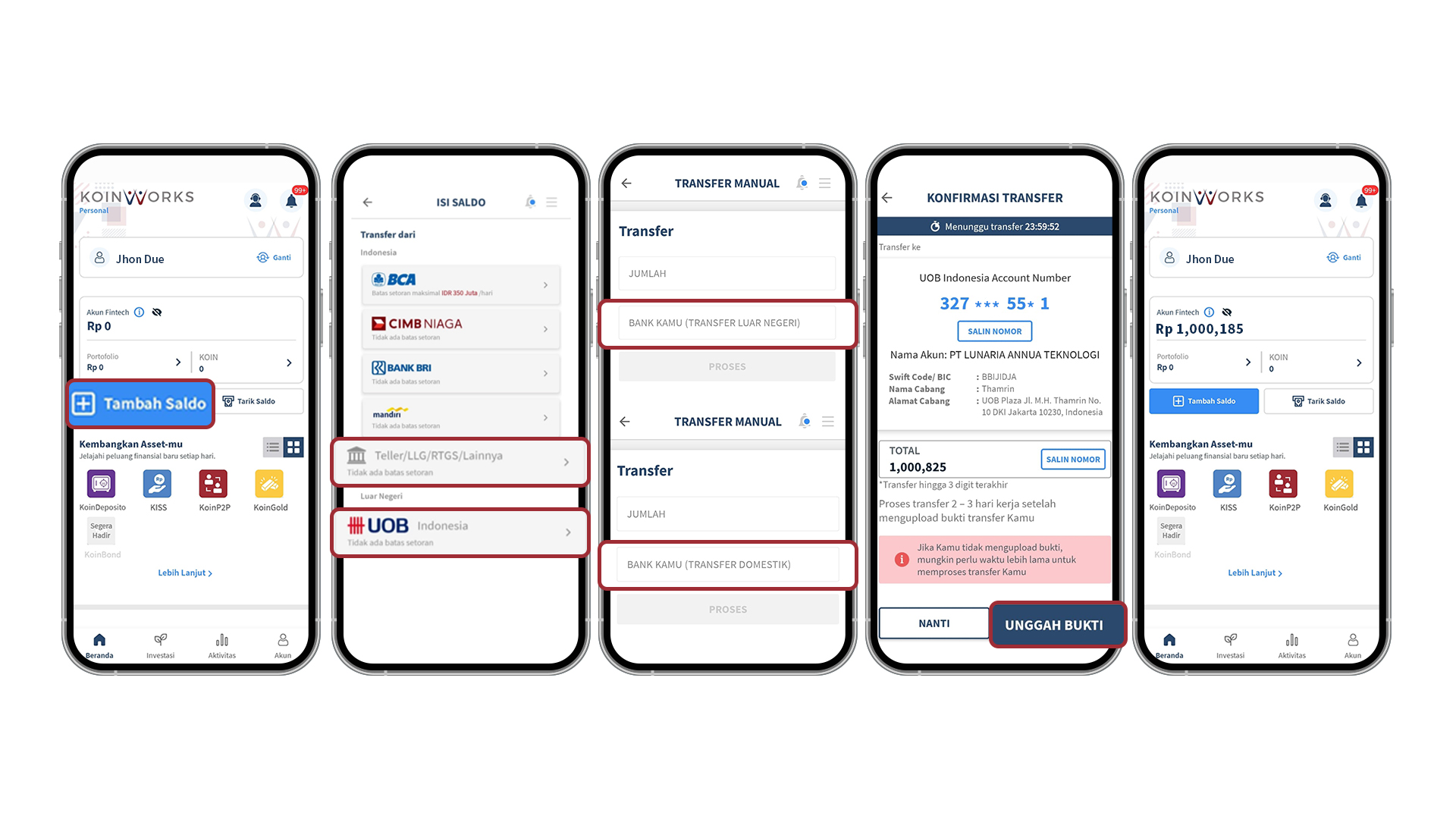 - Lakukan transfer dana dari rekening bank Anda ke rekening KoinWorks yang tertera di aplikasi.